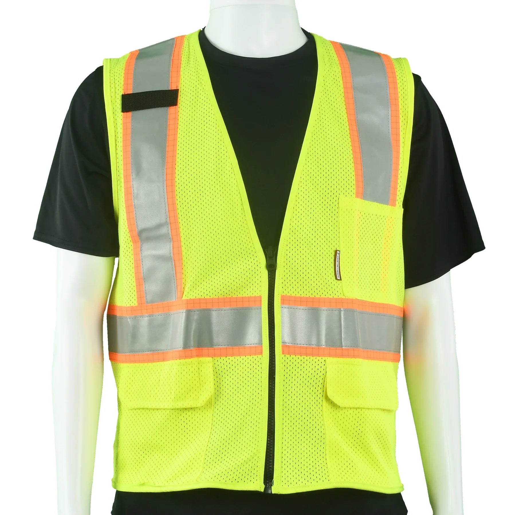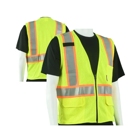 Class 2 Type R Hi-Vis Safety Vest, Yellow Mesh, Silver and Orange Trim