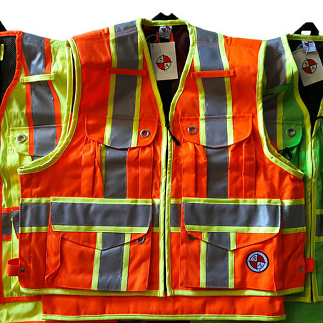 Safety Apparel's PC15X Party Chief Survey vest with full reflective "X" striping design on the back of the vest. The ANSI 107/CSA Z-96 is compliant for use in the US, Canada and all across North America.